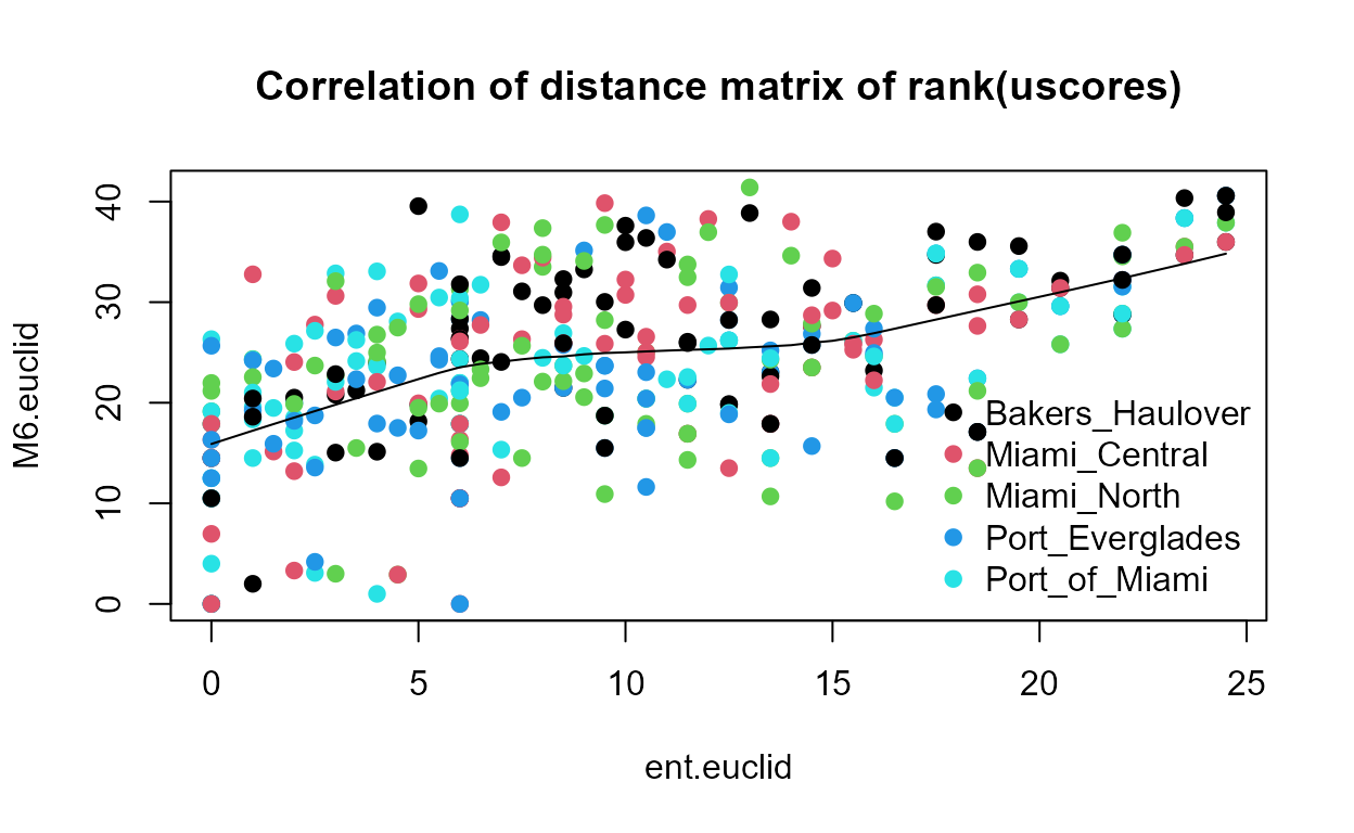 M6.Ktau <- mantel(ent.euclid, M6.euclid, method="kendall", permutations = 9999)
